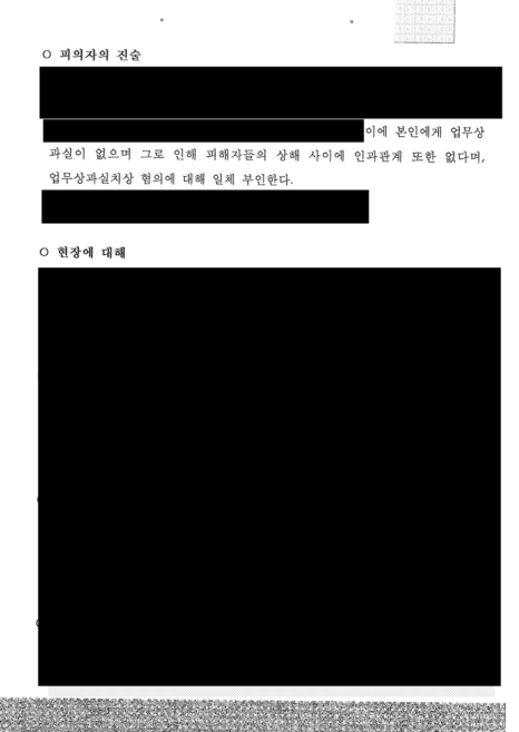 변호인의견서의 핵심은 의뢰인에게 업무상 과실(주의의무 위반)이 없다는 점이었습니다.