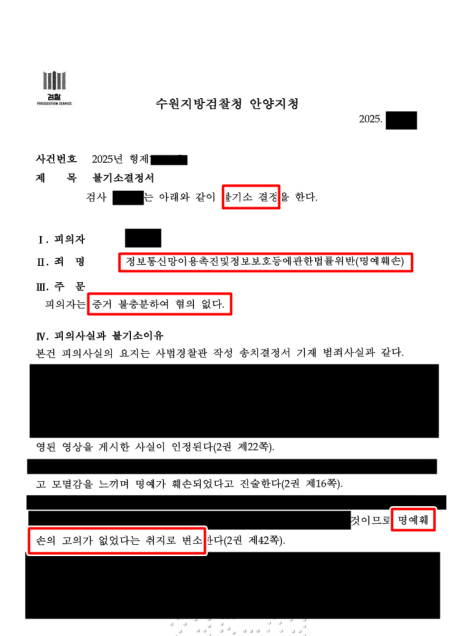 명예훼손죄 : 검찰단계 불기소 처분 성공사례