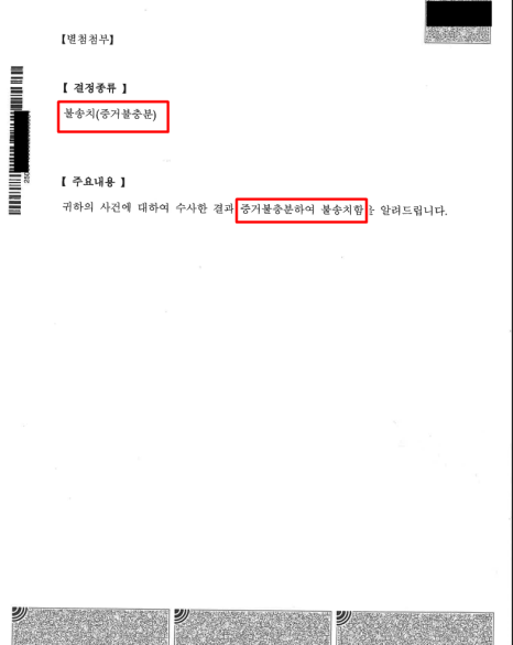 혐의없음 불송치 처분이 나와야 한다는 점을 집중적으로 어필하였습니다.