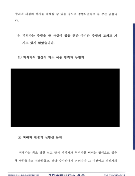 때문에 이 사건 버스 공중밀집장소추행 사건의 무혐의를 위해 어떠한 주장을 해야 하는지 명확히 알고 있었습니다.