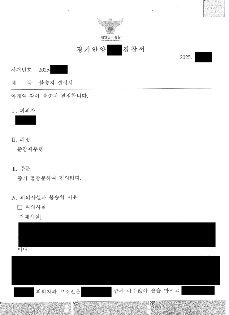 4. 결과 -준강제추행죄 : 경찰 무혐의 불송치 처분 성공