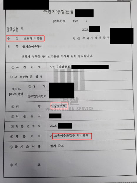 의뢰인은 다행히 기소유예 처분을 받아 아무런 전과를 남기지 않게 되었습니다.