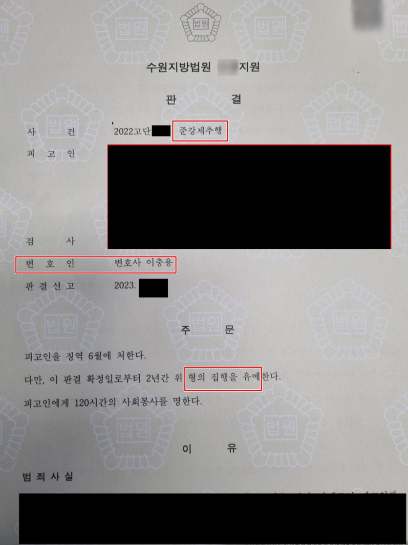 판사님께서 실형과 집행유예 사이에서 고민을 많이 하셨던 것으로 보입니다.