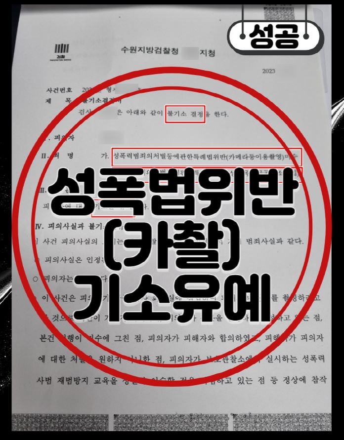 이 사건은 굉장히 놀라운 결과를 얻어 냈지만, 화장실몰카 사건의 경우 기소유예 받기가 굉장히 어렵고 촬영기간, 범행횟수, 촬영물 내용에 따라 초범이라도 징역형의 실형을 받을 가능성이 높은 범죄입니다.