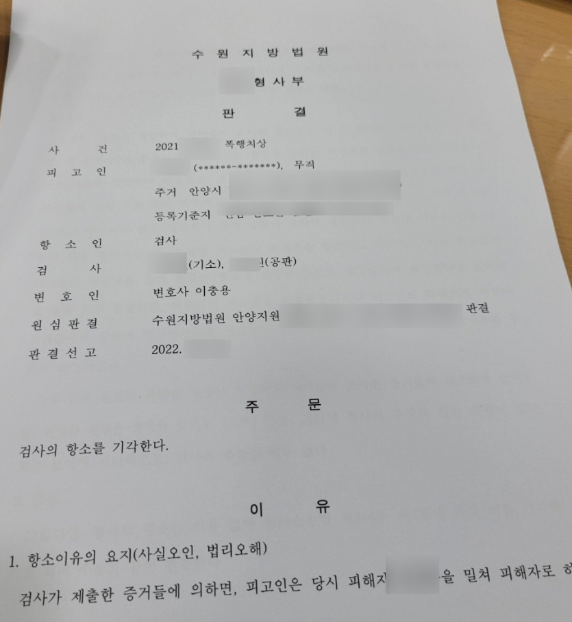 폭행치상죄 - 검사 항소기각 판결 성공사례