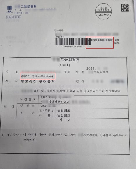 제 스스로도 가능성이 높지 않았다 판단하여 더 치밀하게 항고장을 작성한 것이 주효하였다고 생각합니다.