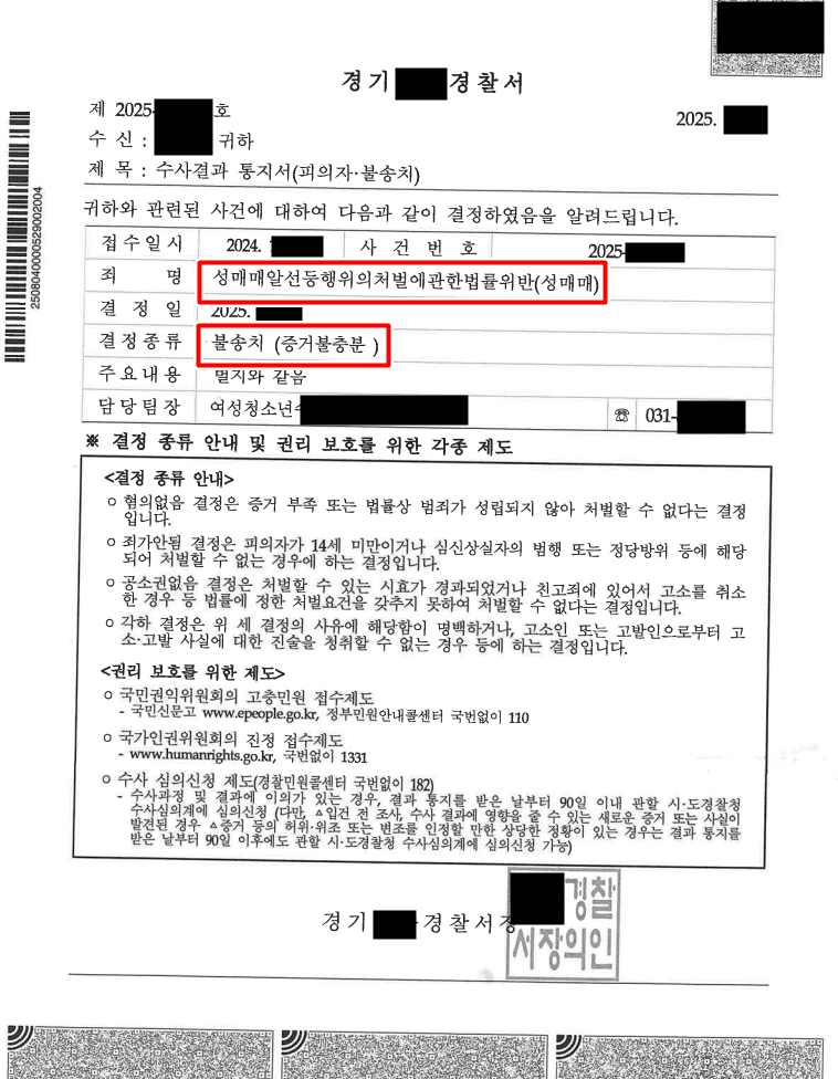 성매매알선등행위의처벌에관한법률위반(성매매) : 경찰 불송치 처분 성공사례