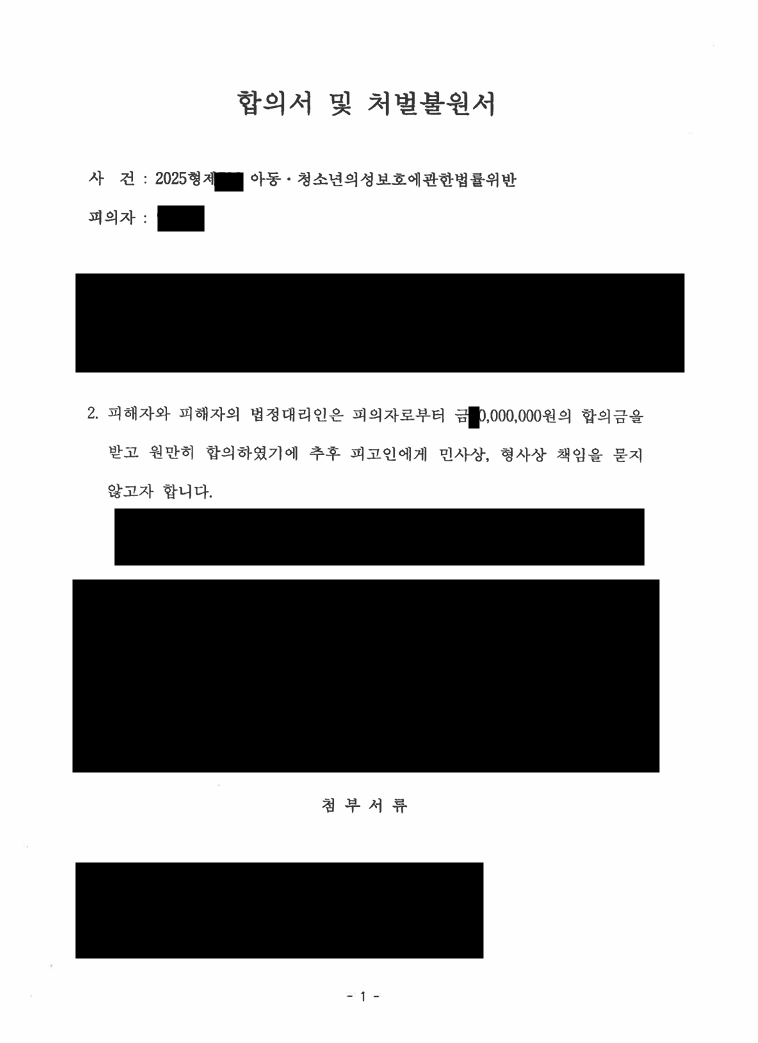 피해 아동의 부모님께서는 고민을 하시다 형사합의를 하고싶다고 말씀드렸고,