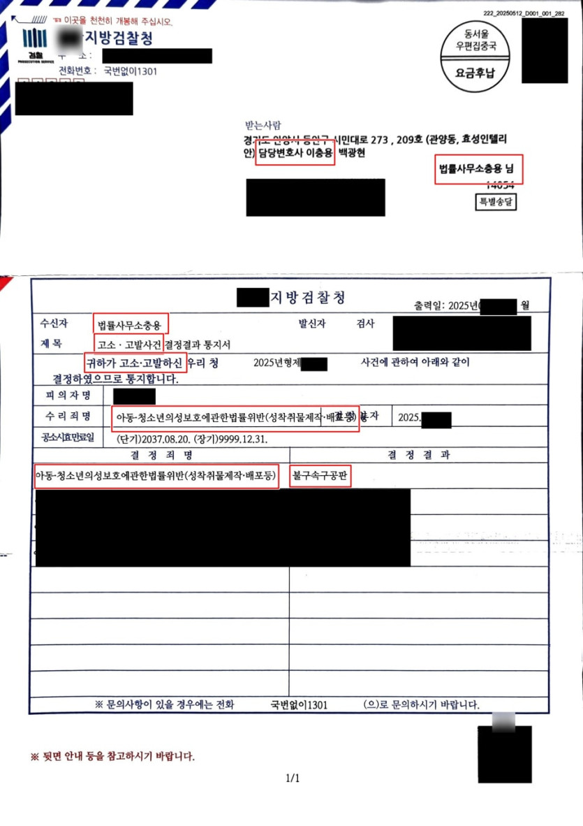 상대방은 성착취물제각죄 혐의 인정되어 담당 검사님께서는 이 사건을 구공판 청구하셨습니다.