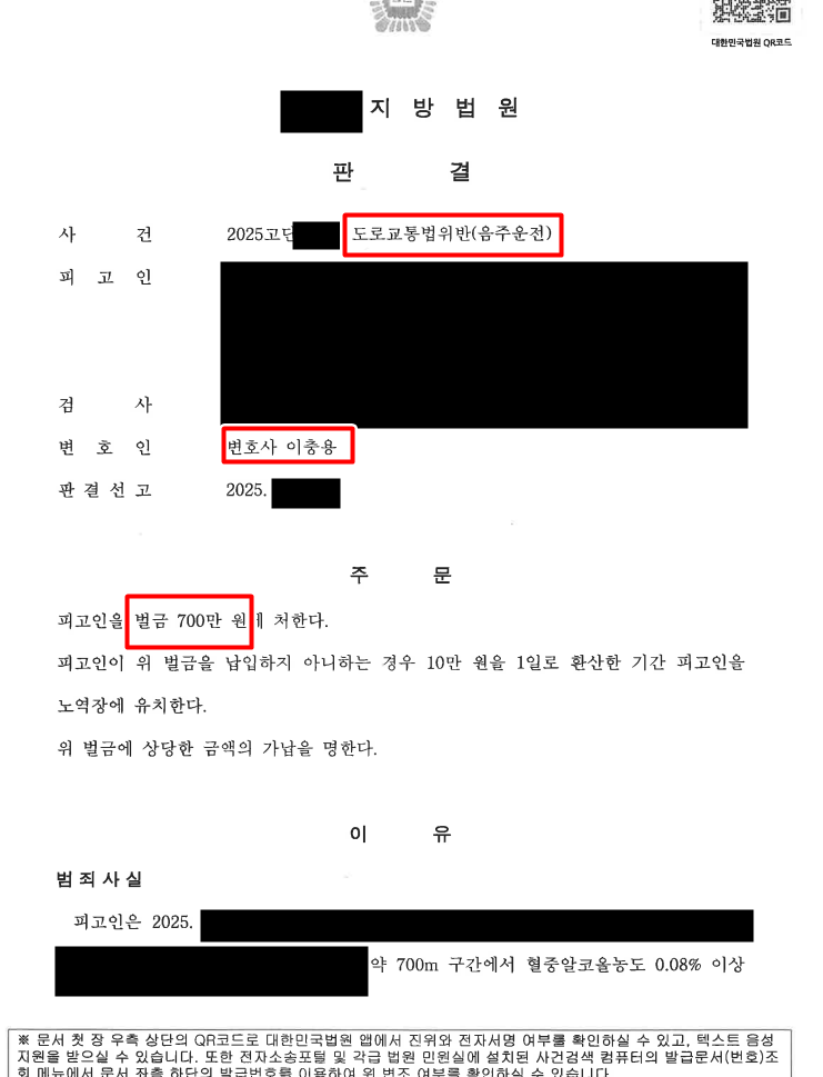 의뢰인에게 벌금 700만 원을 선고하였습니다.