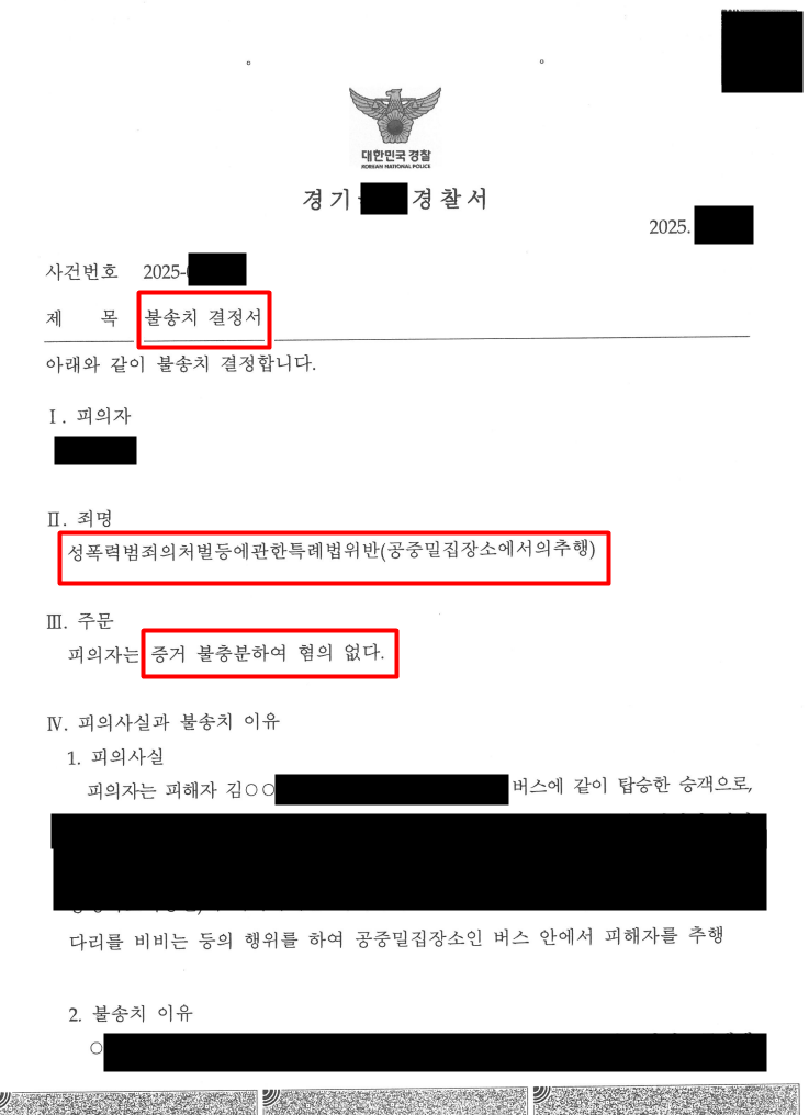 4. 결과 -버스 공중밀집장소 추행 : 경찰 무혐의 불송치 결정
